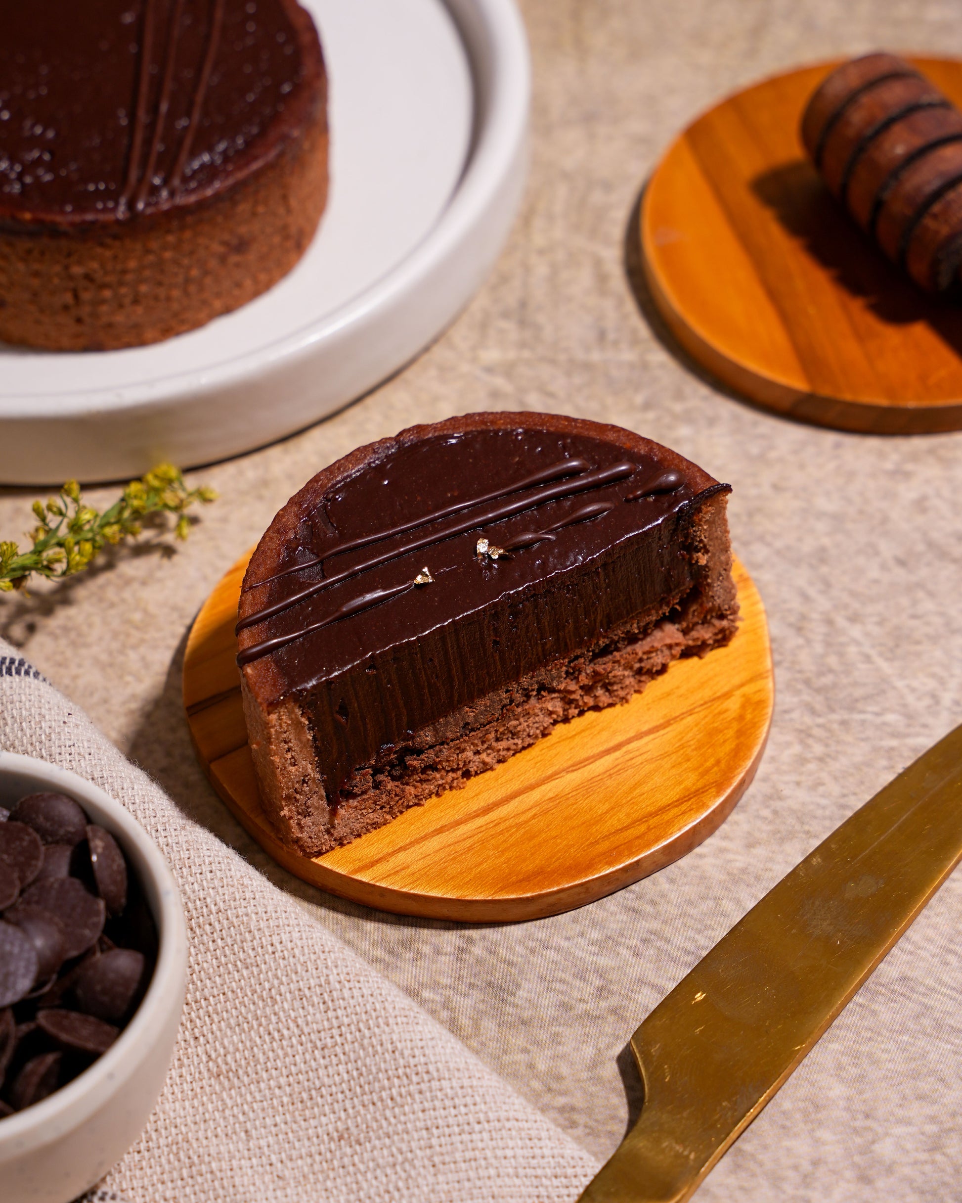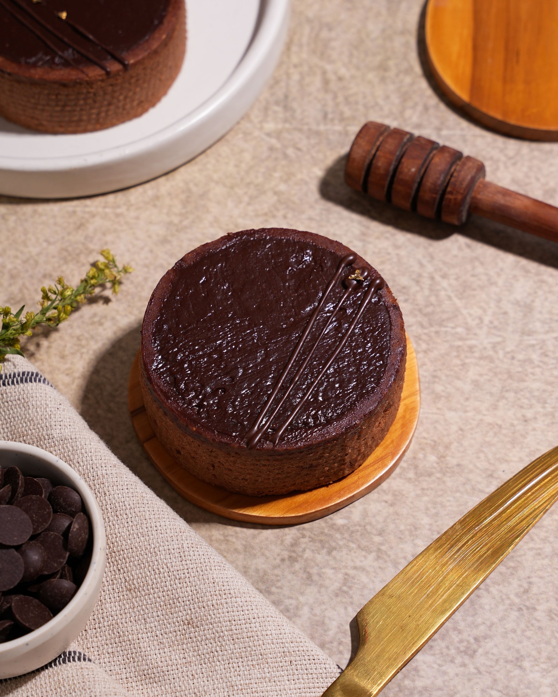 Chocolate tart filled with chocolate brownie & dark chocolate ganache